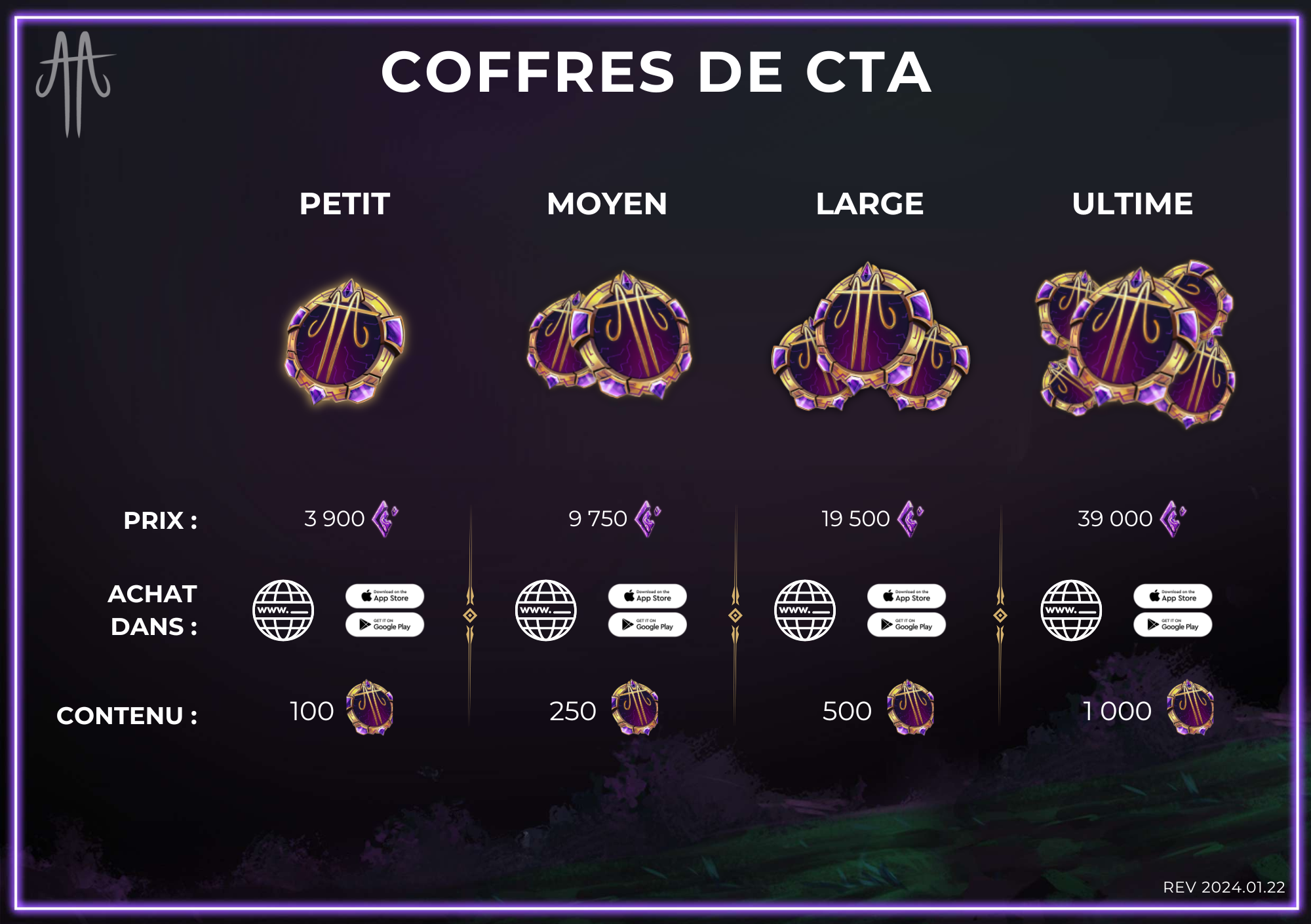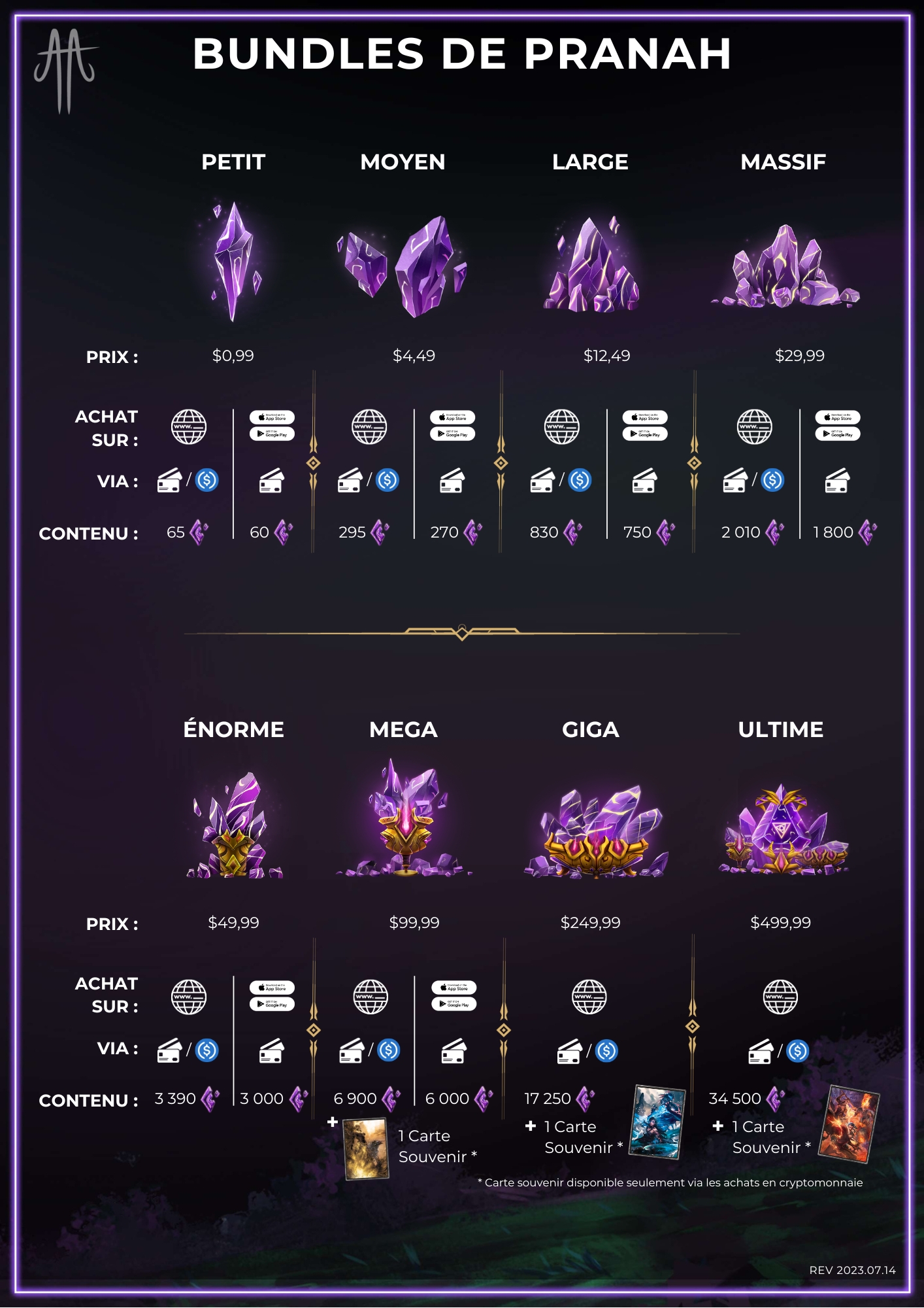 Si vous possédez au moins 250 CTA sur votre compte de jeu, il vous est également possible d'acheter du token à l'unité (39 Pranah = 1 CTA). Les bundles de tokens CTA sont aussi disponibles à l'achat directement dans le jeu.