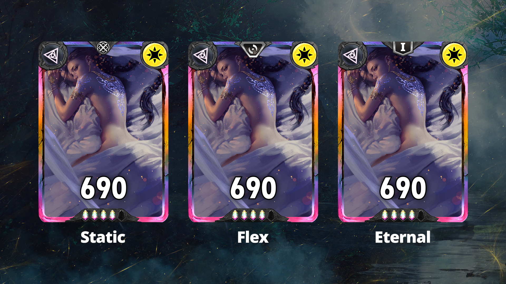* Flex cards are mostly purchased in the store. A player can transform them into Static or Eternal cards.