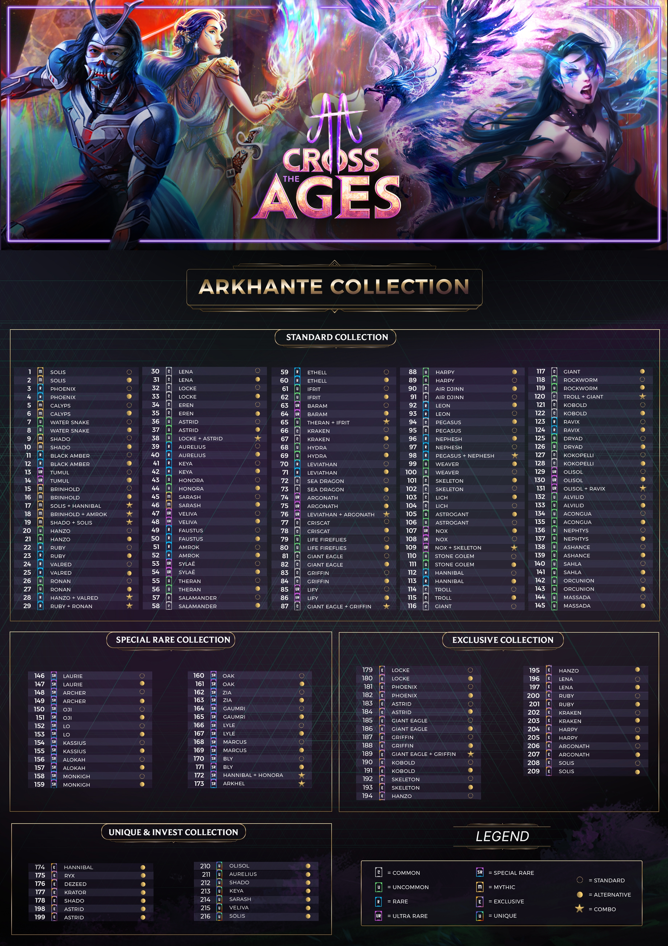 Dans l'univers CTA, les carte NFT sont représentées par les cartes dites Eternal. Les cartes ont une supply maximale dépendemment de leur rareté :